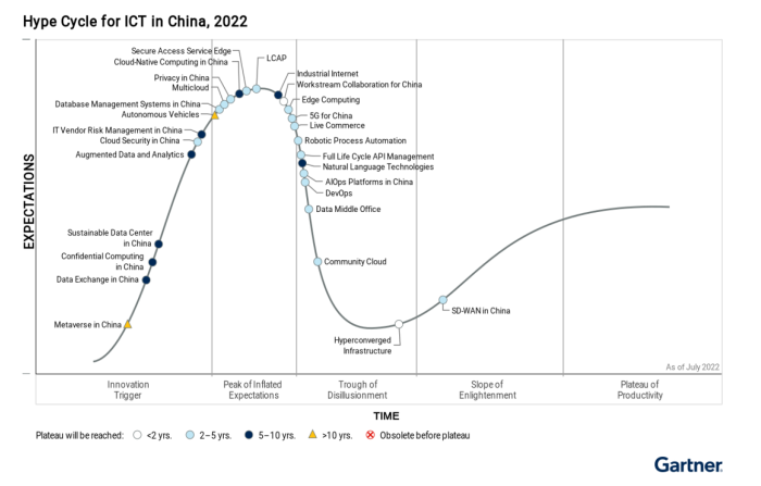 近日,全球权威咨询分析机构Gartner发布了“2022中国ICT技术成熟度曲线(Hype Cycle for ICT in China, 2022)”报告,灵雀云(Alauda.io)连续三年入选,并进入首次发布的中国云原生计算代表性厂商(sample vendor)名单。