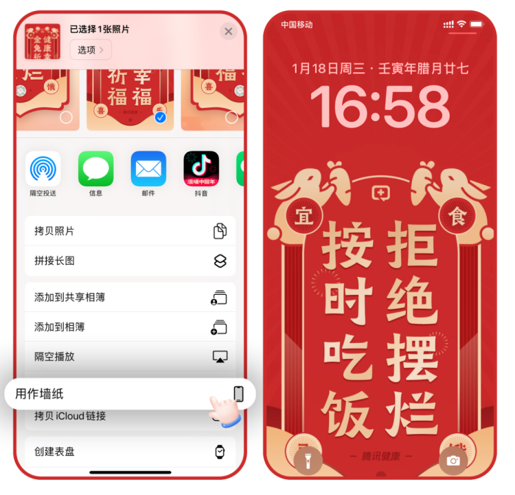图:腾讯健康的“新年健康符”可设置为壁纸