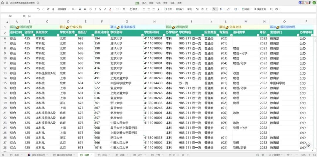 一些生活服务、工具类小程序也瞄准了这两类市场需求,结合热点推广产品拉新转化。金山文档提供的“高校查询表”采用了全新的「轻表格」功能,集合超过 20 万的信息,使用新工具「应用」制作的「高校查询应用」仅需 3 步即可找出心仪学校。