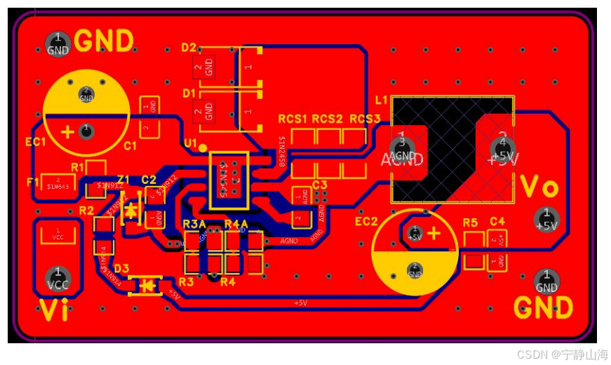 7- PCB 布线小信号远离电感 L1 和续流二极管 D1;