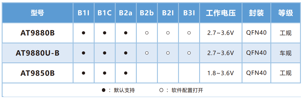 AT9880B是一颗支持北斗三号和北斗二号的多频北斗定位芯片,支持接收B1I、B1C、B2a、 B2b、B2I 和 B3I频点信号,已通过北斗认证报告。