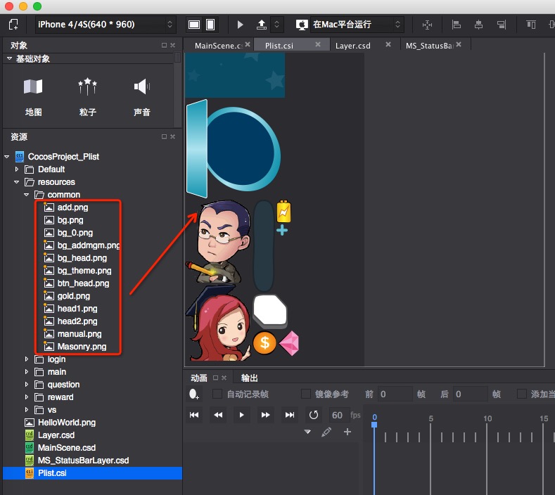 5、resource.js文件里,要预加载合图文件导出的 .png 文件和 .plist 文件。搞定。