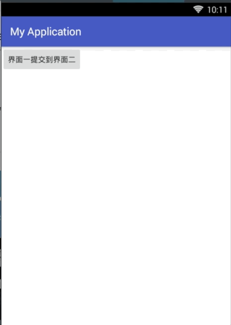 Bundle bundle = this.getIntent().getExtras(); String tname = bundle.getString("name");//接收前一个界面穿过来的Key String tpassword = bundle.getString("password"); String tsex = bundle.getString("sex"); String city = bundle.getString("city");