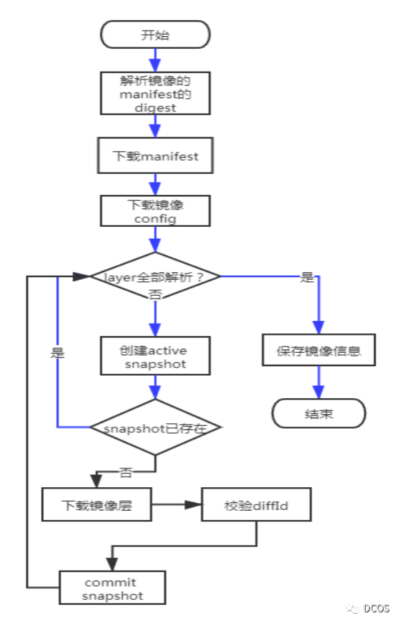 ③ 根据manifest的内容获取镜像config的digest的值,从镜像仓库中下载config,保存在content store中