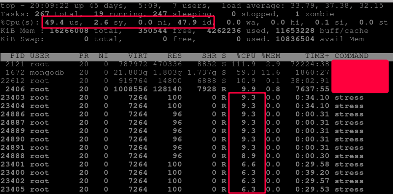 今天,想尝试复现一个问题,需要达到一个效果就是将 CPU 打满,制造一个负载很高的情况,我的第一想法就是使用 stress,结果发现居然一直都打不满,只能打到一半(50%)就到顶了,所以就探索了一下什么问题,顺便记录一下。