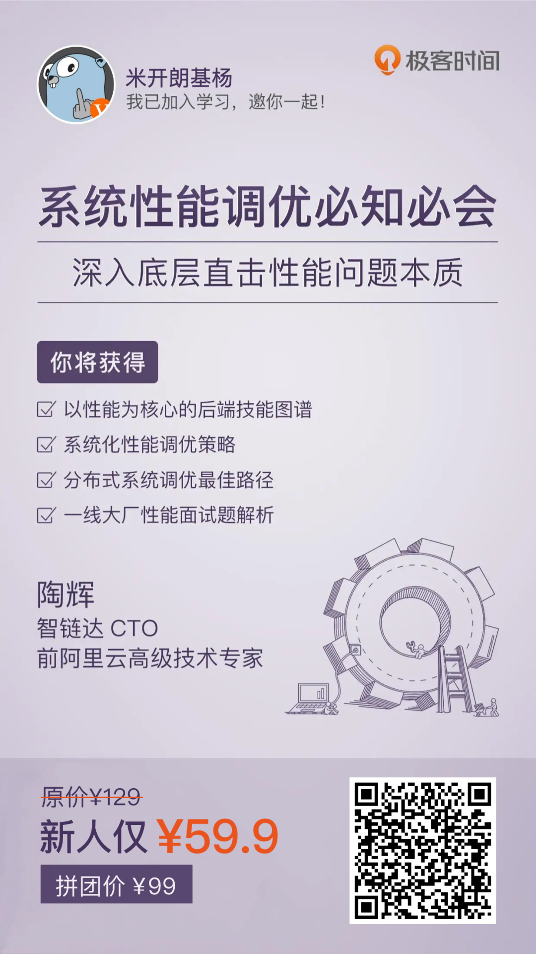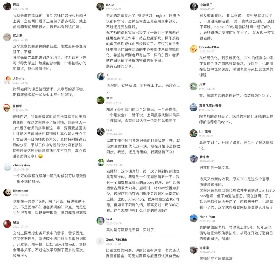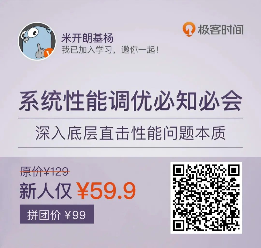 两年前,看过他的 Nginx 视频课,150 讲内容,含金量非常高。所以,去年看他又推出了专栏《系统性能调优必知必会》,我第一时间就入手了,跟着学下来,感觉收获很大。