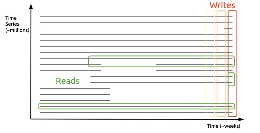 时序数据库也是数据库的一种,只要它想持久化,自然不能例外。但与键值数据库相比,时序数据库存储的数据有更特殊的读写特征,Björn Rabenstein 将称其为: