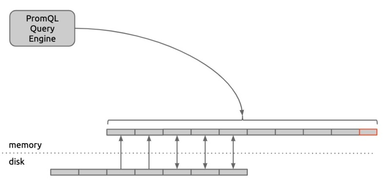 Prometheus 的查询引擎的查询过程必须完全在内存中进行。因此在执行之前,存储引擎需要将不在内存中的 chunks 预加载到内存中: