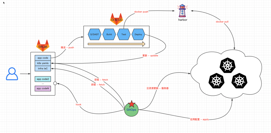 GitOps = 基础设施即代码(IaC) + 合并请求(MR) + 持续集成/持续交付(CI/CD)
