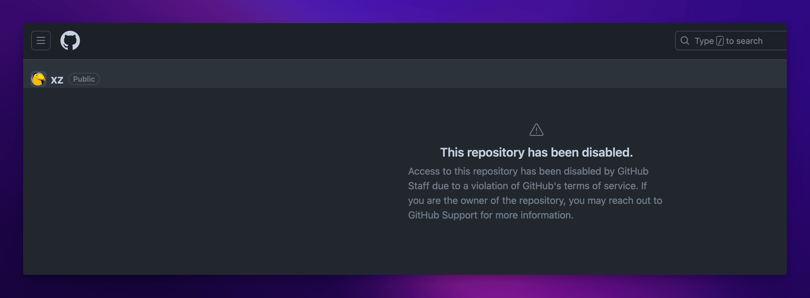 目前 GitHub 官方已经将 xz 仓库给封了: