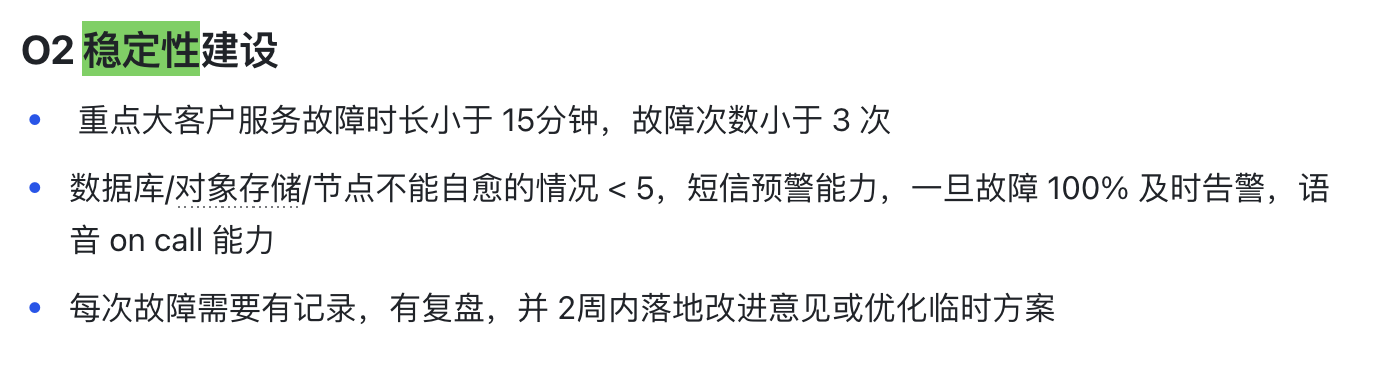 在管理目标上,一开始我们在 2024 Q1 OKR 中这样去定义了稳定性收敛的目标: