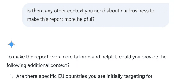 最后,如果你想确保万无一失,可以直接要求“深度研究”代理向你索取更多背景信息: