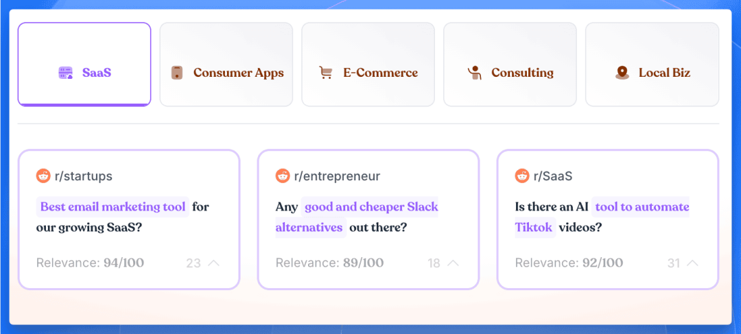 想想看。当有人在 r/entrepreneur 发帖问创业公司用什么邮件营销工具最好,这可不只是个问题。这是一个准客户在举手。他几乎是在请求你向他推销。