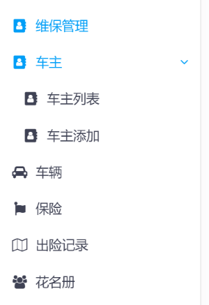 new MenuItem() { Text = "车主", Icon = "fa fa-address-book", Url = "/owners" ,Items=new List<MenuItem>() {