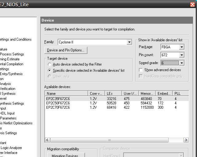 DE2的EP2C35F672C6