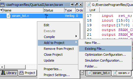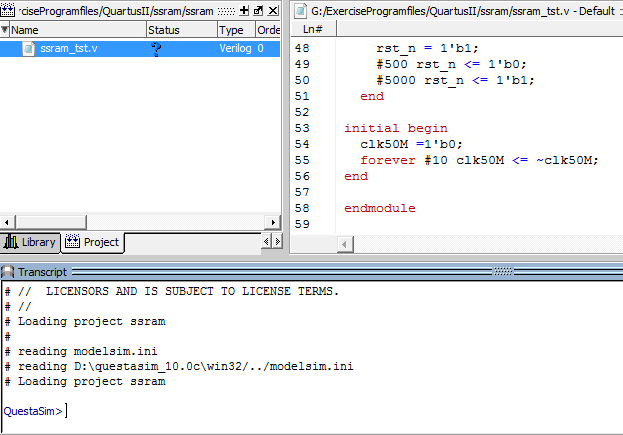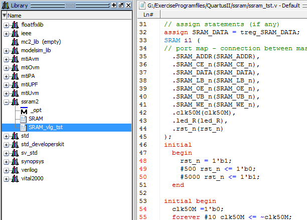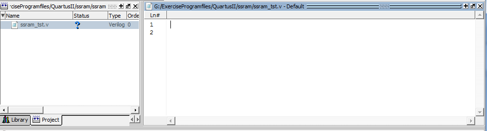 4. 双击打开ssram_tst文件,(注意:若是Verilog文件已经关联了其他的文本编辑器,则双击后在关联的文本编辑器中打开)。
