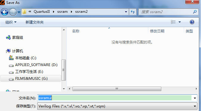 录入后,save。弹出一对话框,取名ssram,然后browse到我们原来所新建的文件夹里,如下图
