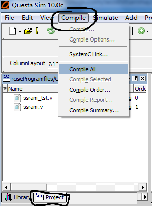 在Project标签下的Status列的问号,表示文件尚未编译进工程,或者在最后编译前,源文件有所改动。欲编译文件,选择Compile<Compile ALL,或者右击Project标签,选择Compile>Compile All。