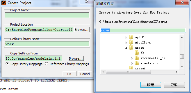 library 采用自己新建的一个库ssram2,点击OK,关闭对话框。