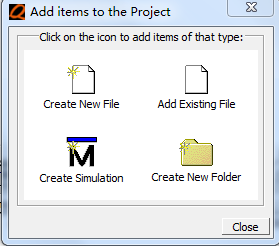 3. 单击OK,关闭本对话框。新的工程文件将会在工程窗口显示。单击Close,以关闭Add Items to the Project。