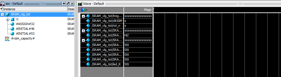 4. 在图3.2中,单击SRAM_vlg_tst,单击右键,然后选择Add>To Wave>All Items in region,然后单击左键。出现图3.3所示画面。