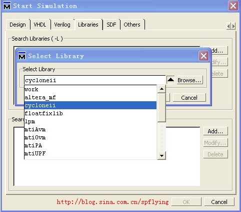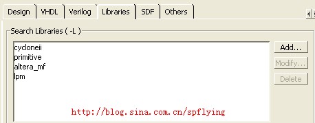 (1)元件库,例如cycloneII元件库,在仿真中必用的特定型号的FPGA/CPLD的库。