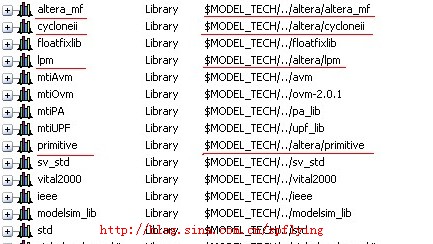 第一种元件库是进行时序仿真时不可缺少的资源库。后三种库是调用了相应的Altera设计模块进行设计时才必须用到的库。值得一提的是,在modelsim-altera的AE版本中,后三种库是已经编译好的,在modelsim-altera安装目录下altera文件夹中可以找到。