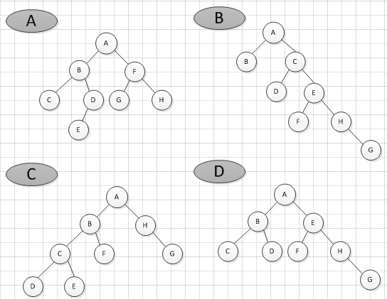 1.已知一棵二叉树的前序遍历是ABCDEFGH,那么它的中序遍历一定不可能是: