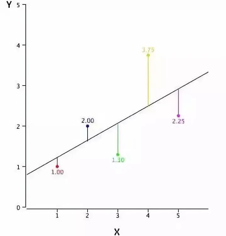 一元线性回归和多元线性回归的区别在于,多元线性回归有(>1)个自变量,而一元线性回归通常只有1个自变量。现在的问题是:我们如何得到一个最佳的拟合线呢?