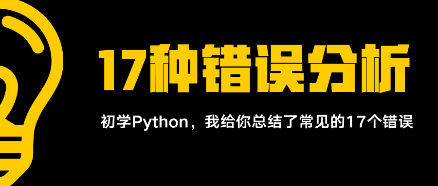 对于刚入门的Pythoner在学习过程中运行代码是或多或少会遇到一些错误,刚开始可能看起来比较费劲。随着代码量的积累,熟能生巧当遇到一些运行时错误时能够很快的定位问题原题。下面整理了常见的17个错误,希望能够帮助到大家。