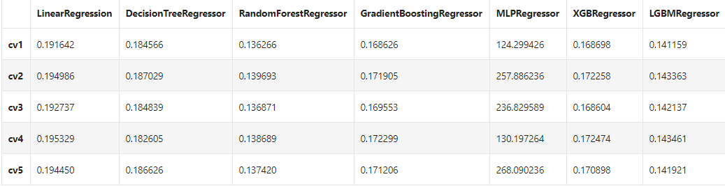 result = pd.DataFrame(result)result.index = ['cv' + str(x) for x in range(1, 6)]result