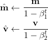β_1 与 β_2 是两个特有的超参数,一般设为0.9和0.999。