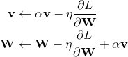 self.v[key] = self.momentum * self.v[key] - self.lr * grads[key]