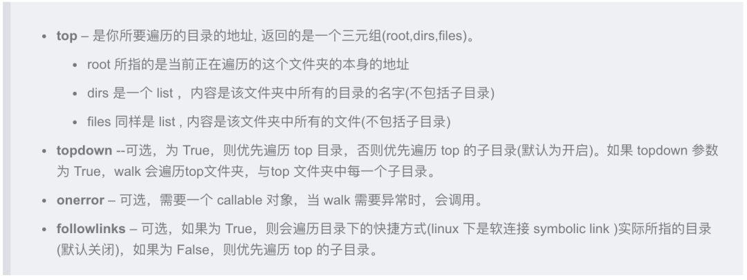 list_result = os.walk(".", topdown=True, onerror=None, followlinks=False) # 获取当前目录 参数可写可不写