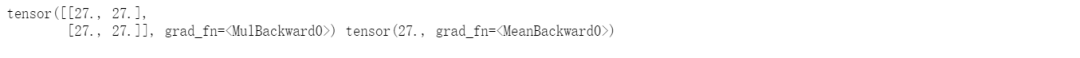 现在让我们反向传播:因为out包含单个标量,out.backward()所以等效于out.backward(torch.tensor(1.))。