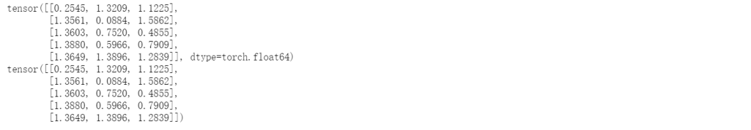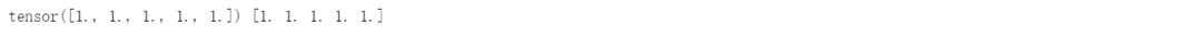 我们很容易⽤ numpy() 和 from_numpy() 将 Tensor 和NumPy中的数组相互转换。但是需要注意的⼀点是:这两个函数所产生的的 Tensor 和NumPy中的数组共享相同的内存(所以他们之间的转换很快),改变其中⼀个时另⼀个也会改变!!!