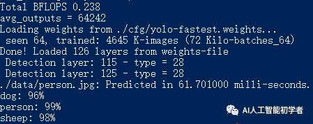 ./darknet partial yolo-fastest.cfg yolo-fastest.weights yolo-fastest.conv.109 109以下是原作者所得到的结果