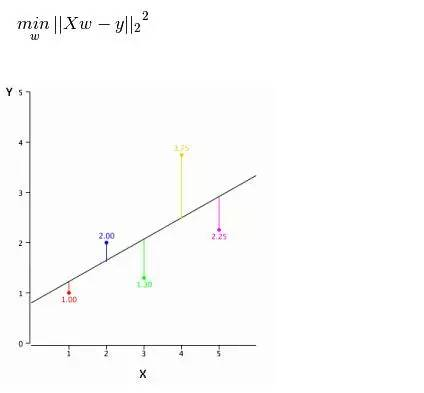 这个问题可以使用最小二乘法轻松地完成。最小二乘法也是用于拟合回归线最常用的方法。对于观测数据,它通过最小化每个数据点到线的垂直偏差平方和来计算最佳拟合线。因为在相加时,偏差先平方,所以正值和负值没有抵消。