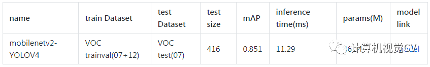 下表展示了 mobilenetv2-YOLOV4 的性能结果: