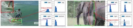 问题二比较好理解,在复杂场景中,边界框的表示具有很强的不确定性,而现有的框回归本质都是建模了非常单一的狄拉克分布,非常不flexible。我们希望用一种general的分布去建模边界框的表示。问题二如图所示(比如被水模糊掉的滑板,以及严重遮挡的大象):