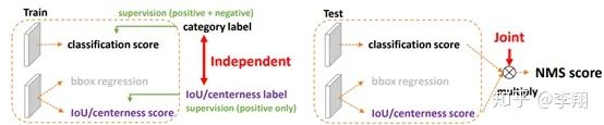 1) 用法不一致。训练的时候,分类和质量估计各自训记几个儿的,但测试的时候却又是乘在一起作为NMS score排序的依据,这个操作显然没有end-to-end,必然存在一定的gap。