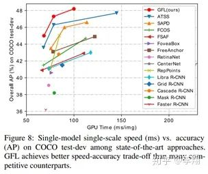 1. 这两个方法,即QFL和DFL的作用是正交的,他们的增益互不影响,所以结合使用更香(我们统一称之为GFL)。我们在基于Resnet50的backbone的ATSS(CVPR20)的baseline上1x训练无multi-scale直接基本无cost地提升了一个点,在COCO validation上从39.2 提到了40.2 AP。实际上QFL还省掉了原来ATSS的centerness那个分支,不过DFL因为引入分布表示需要多回归一些变量,所以一来一去inference的时间基本上也没什么变化。