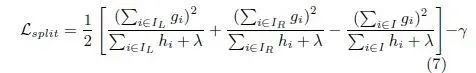 XGBOOST在生成一颗树的时候,使用如下公式进行左右分支。