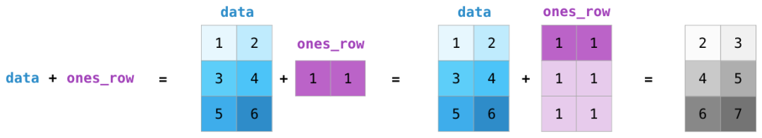 看到 NumPy 是如何理解这个运算的了吗?这个概念叫做广播机制(broadcasting),它非常有用。