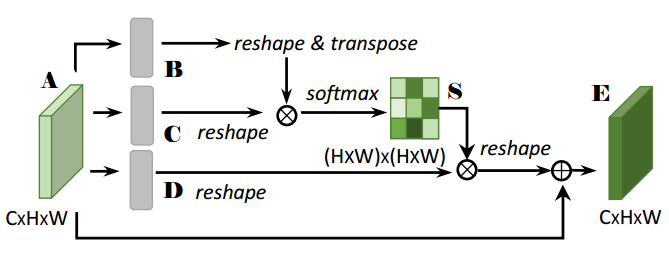 为了在局部特征上模拟丰富的上下文关系,引入了位置注意力模块。位置注意力模块将范围更广的上下文信息编码为局部特征,从而增强了局部特征的表示能力。