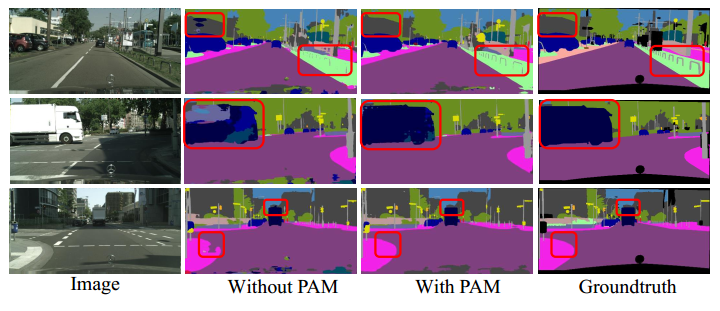 消融实验表明,双注意力模块能有效地捕获长距离上下文信息,并给出更精确的分割结果。注意力网络在4个场景分割数据集上均取得了优异的性能。
