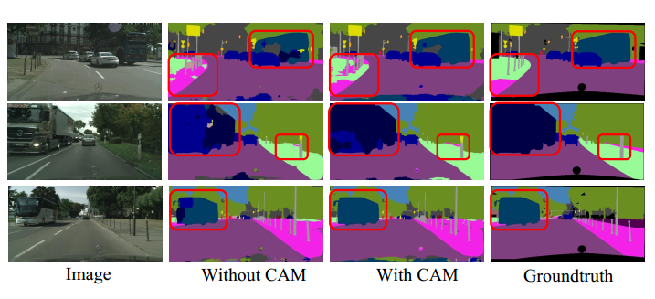本文分别对有注意模力块和没有注意力模块时的结果进行了详细的比较。本文进行了一项全面的消融研究,将结果与其他最先进的语义分割网络进行比较。