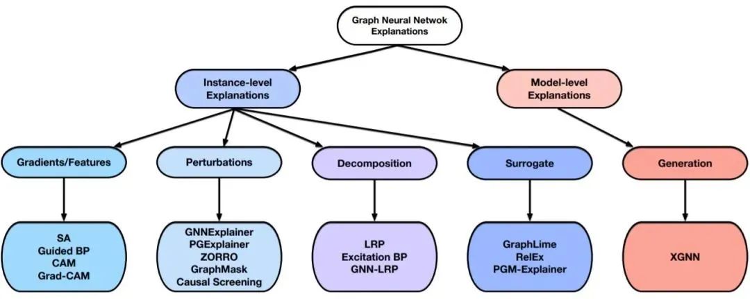 总的来说,这两类方法从不同的角度解释了深度图模型。实例级方法提供了针对具体实例的解释,而模型级方法则提供了高层次的见解和对深度图模型工作原理的一般理解。