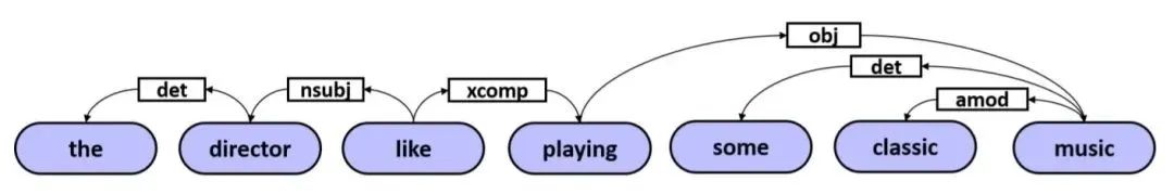对于每个文本序列,将其转换为一个图,每个节点代表一个单词,而边则反映不同单词之间的关系。作者采用Biaffine解析器[71]来提取词的依赖关系。图5中展示了生成的情感图的一个例子。生成的图是有向的,但边标签被忽略了,因为大多数GNNs不能捕获边标签信息。用BERT[72]来学习单词嵌入,并将这种嵌入作为图节点的初始嵌入。建立一个模型,采用预训练好的BERT作为特征提取器,采用一层平均池化的GCN作为分类器。最后预训练的BERT为每个词提取768维的特征向量,作为情感图数据中的节点特征。