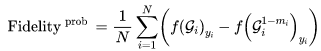 其中是图的原始预测,是图的数量。表示去掉重要输入特征的补全掩码,是将新图输入训练好的GNN 时的预测值。指示函数如果和相等则返回1,否则返回0。注意,指标研究的是预测精度的变化。通过对预测概率的关注,概率的Fidelity可以定义为: